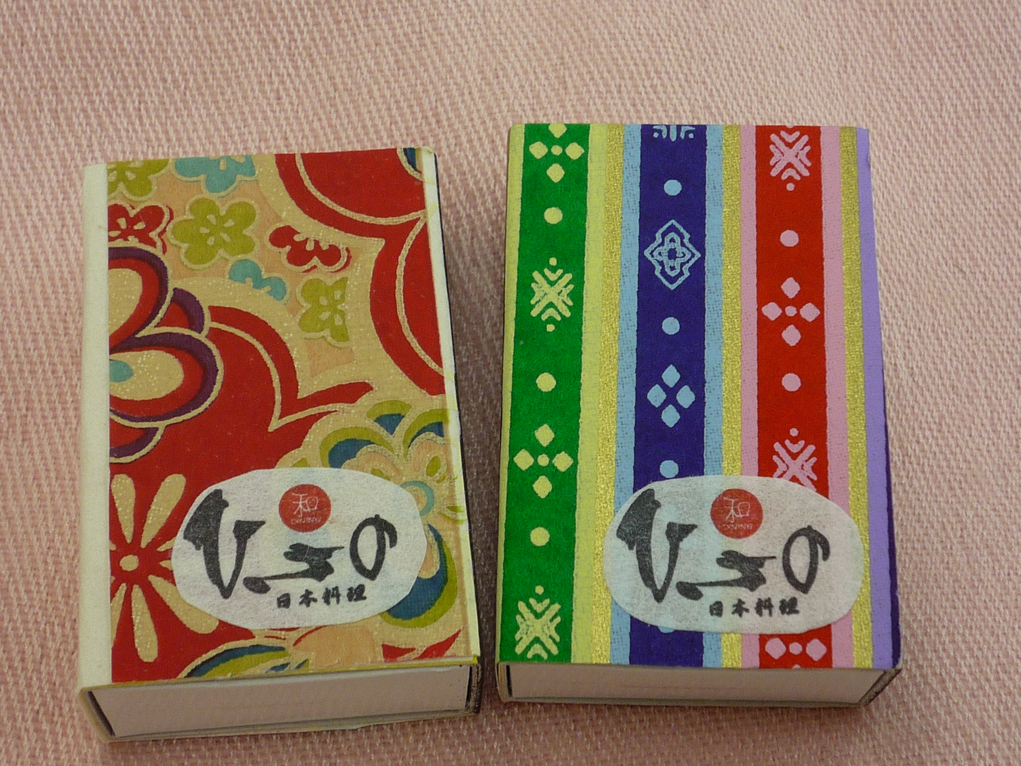 たまにランチを食べに行く、会社のすぐ近くにある日本料理のお店で、こんな可愛いマッチ箱を見つけましたお店のお姉さんに聞いたら、市販のマッチ箱を買ってきて、自分達で千代紙を貼って作っているそうですとっても綺麗で良いアイディアですよね私達があまりにも感激していると、数少ないマッチを下さいました(笑)このお店のように、私達もできるだけ手作りの温かいもので、お客様に喜んで頂けることができれば・・・とすごく参考になりました