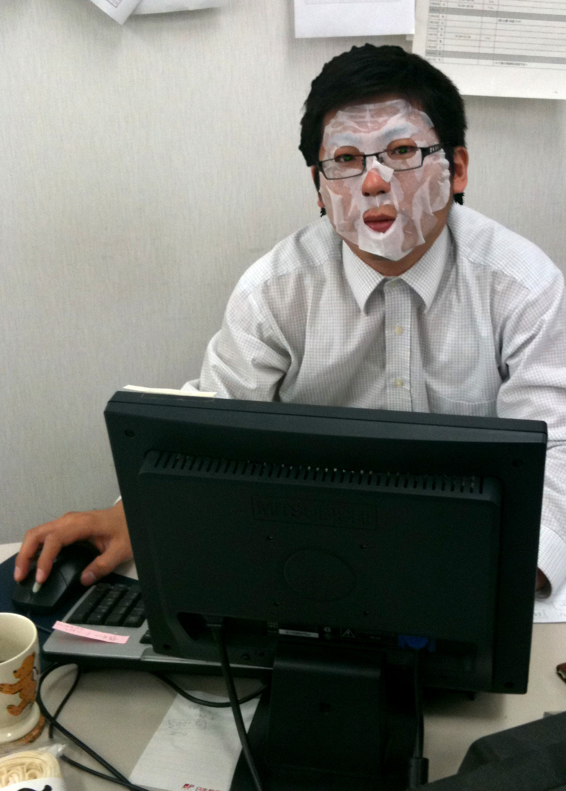 現在、秋のお化粧品キャンペーンに向けて準備をしているところですこの秋、シンリョクシリーズはおかげさまで5周年を迎えますそこで、心ばかりですがお客様に何かプレゼントを・・・と思い、色々探しています(・∀・)スタッフから「コットンパックはどぉ?」という声があり、早速パックを取り寄せて、みんなでお試し中です横井くんたちも自ら率先して、実際に試してくれています(笑)何かおかしいと思っていたら、パックの上から眼鏡はないよね〜(笑)でも、何か新しいことをする時にはいつもこんな感じで、みんなで試して良いものを選んでいます