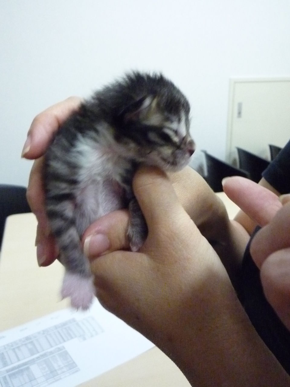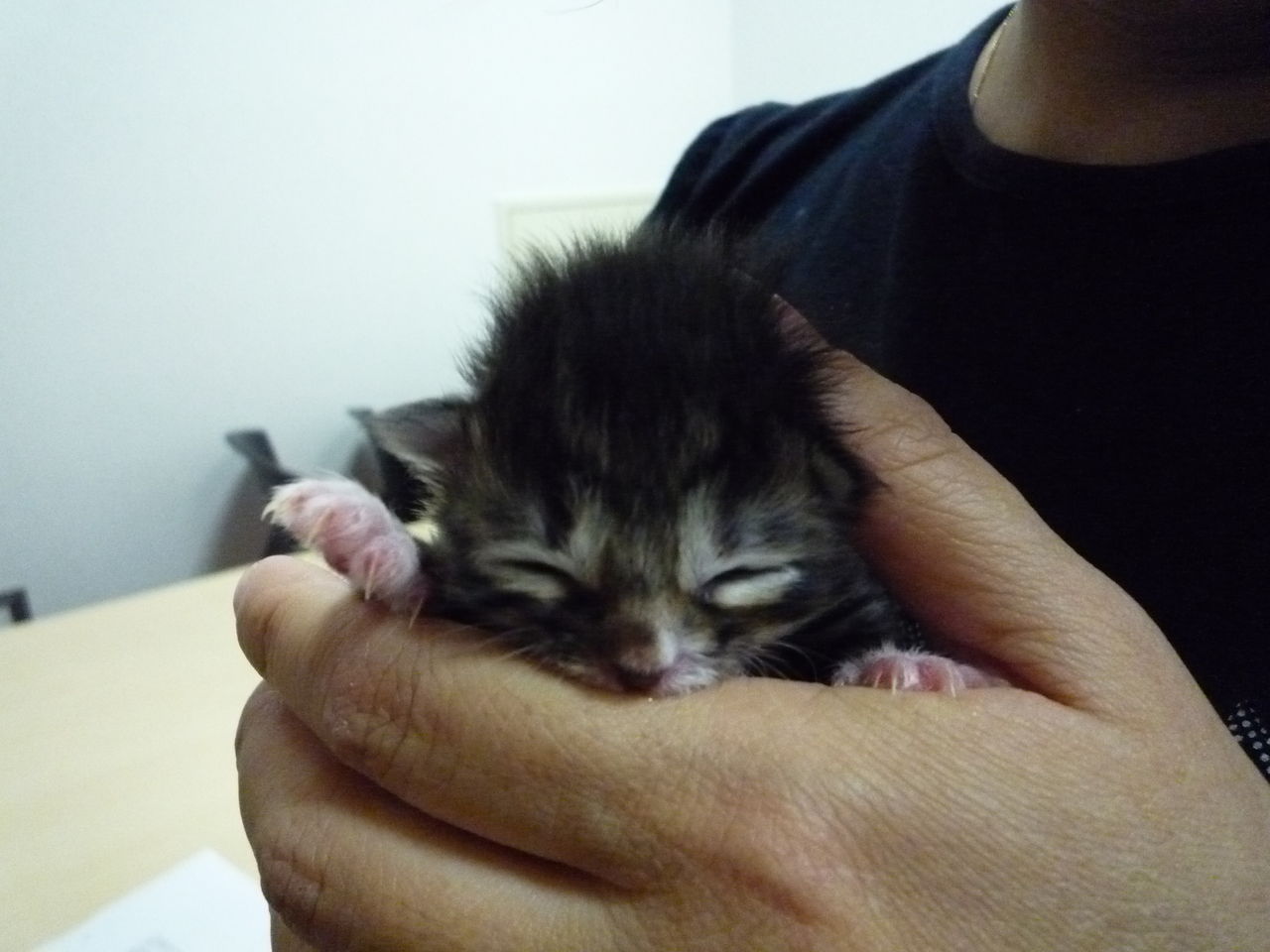 生後間もない子猫を発見母親が育児放棄したのか、溝に捨てられていたそうですまだ目も開いてなくて、お腹が空いているのか指をペロペロなめていました3時間おきにスポイドでミルクをあげていて、まるで人間の赤ちゃんと同じです早く里親が見つかるといいのですが・・・第一候補の村上家は、既にミーちゃんがいるから難しいみたいで・・・