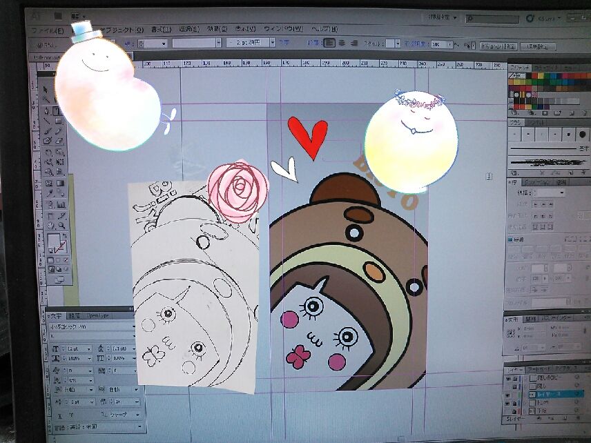 先生の原画をもとにイラストレーターで下絵を作成中