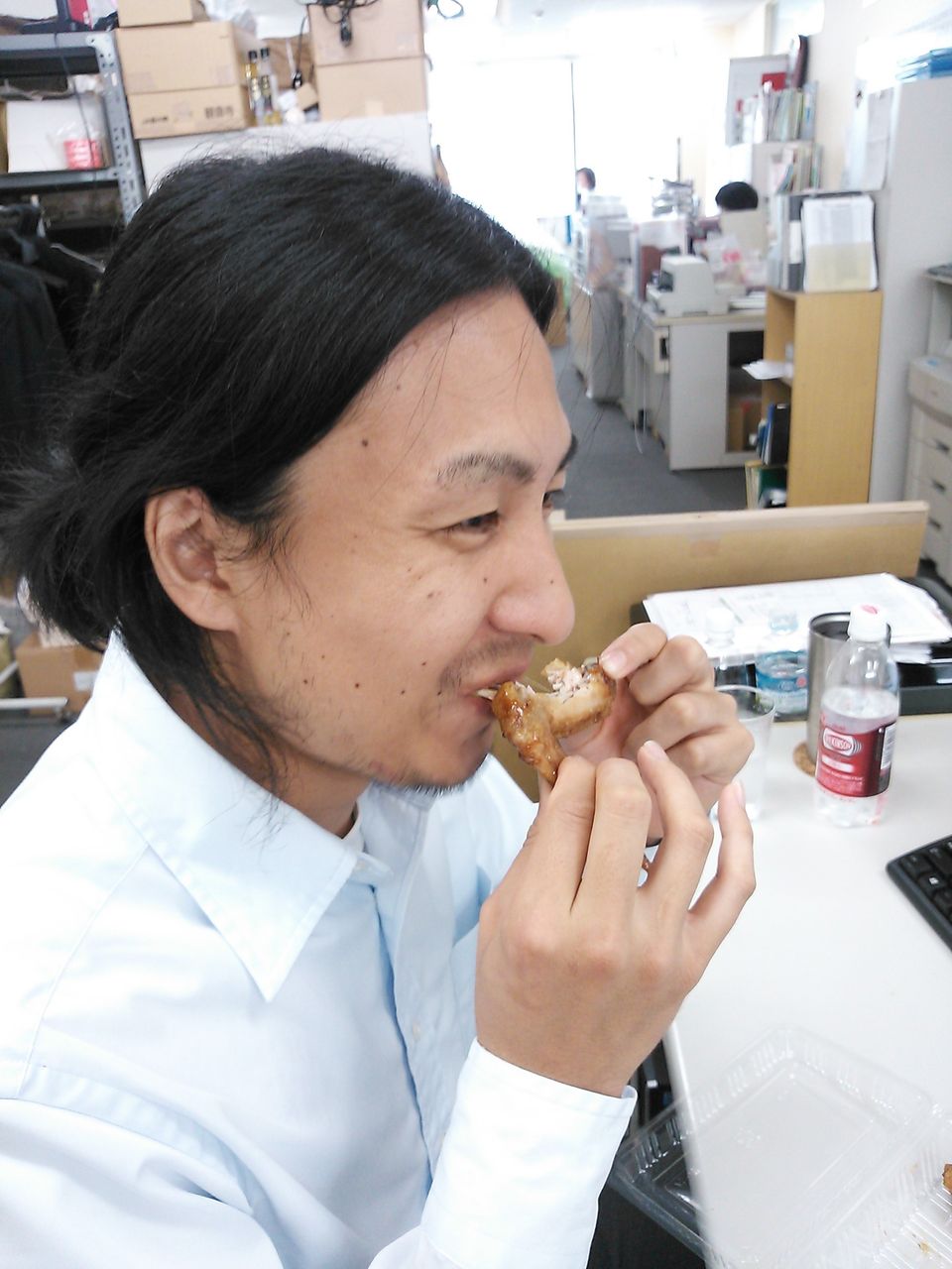 カニ、イクラ、ウニが山盛りの海鮮丼を買って、超ご満悦の先生![]()