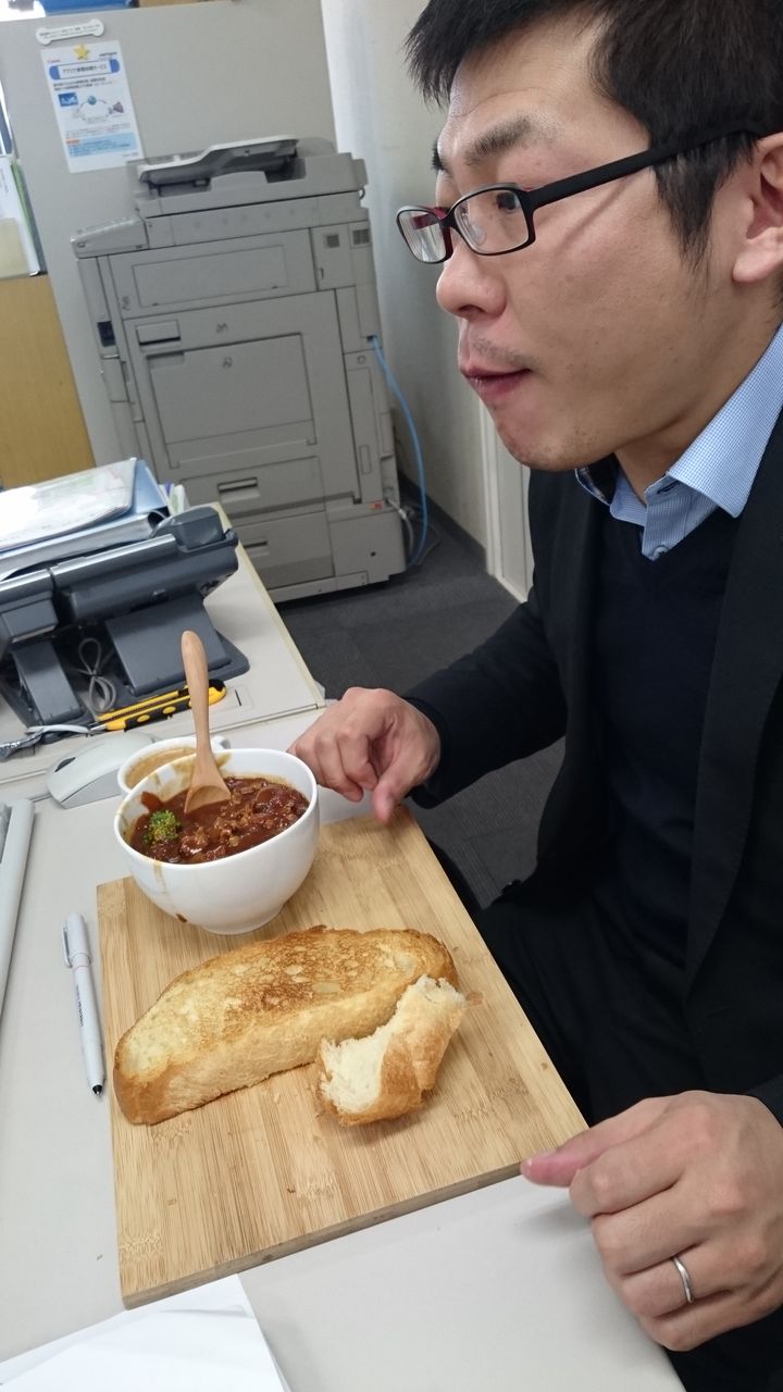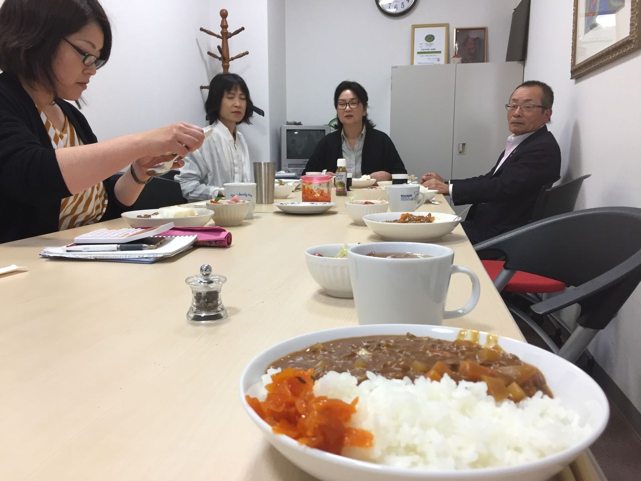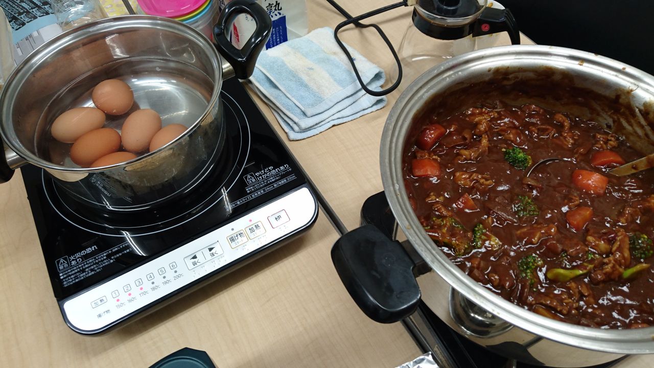 これまで毎月1回、会長や社長を囲んでのランチ会でお弁当を注文していたところが閉店してしまい、今月からは社長・課長・宮崎さんを中心に手作りカレーを作ってくれることになりました![]()