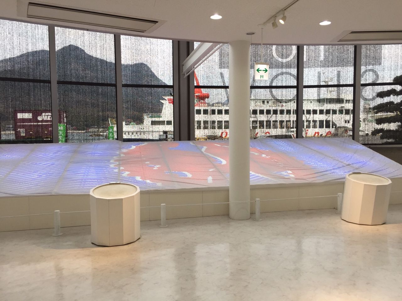 これは港にあったらしいのですが、白い円柱状のものが太鼓になっていて、これを叩くとその奥にある布が揺れる仕組みになっているそうです