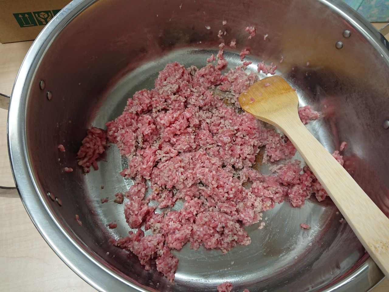 まずはひき肉を炒めます。