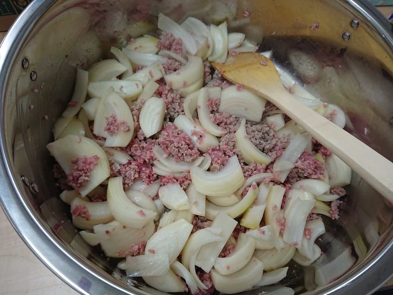 玉ねぎも一緒に炒めます。
