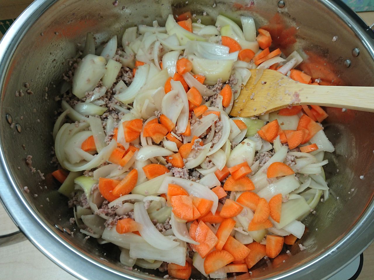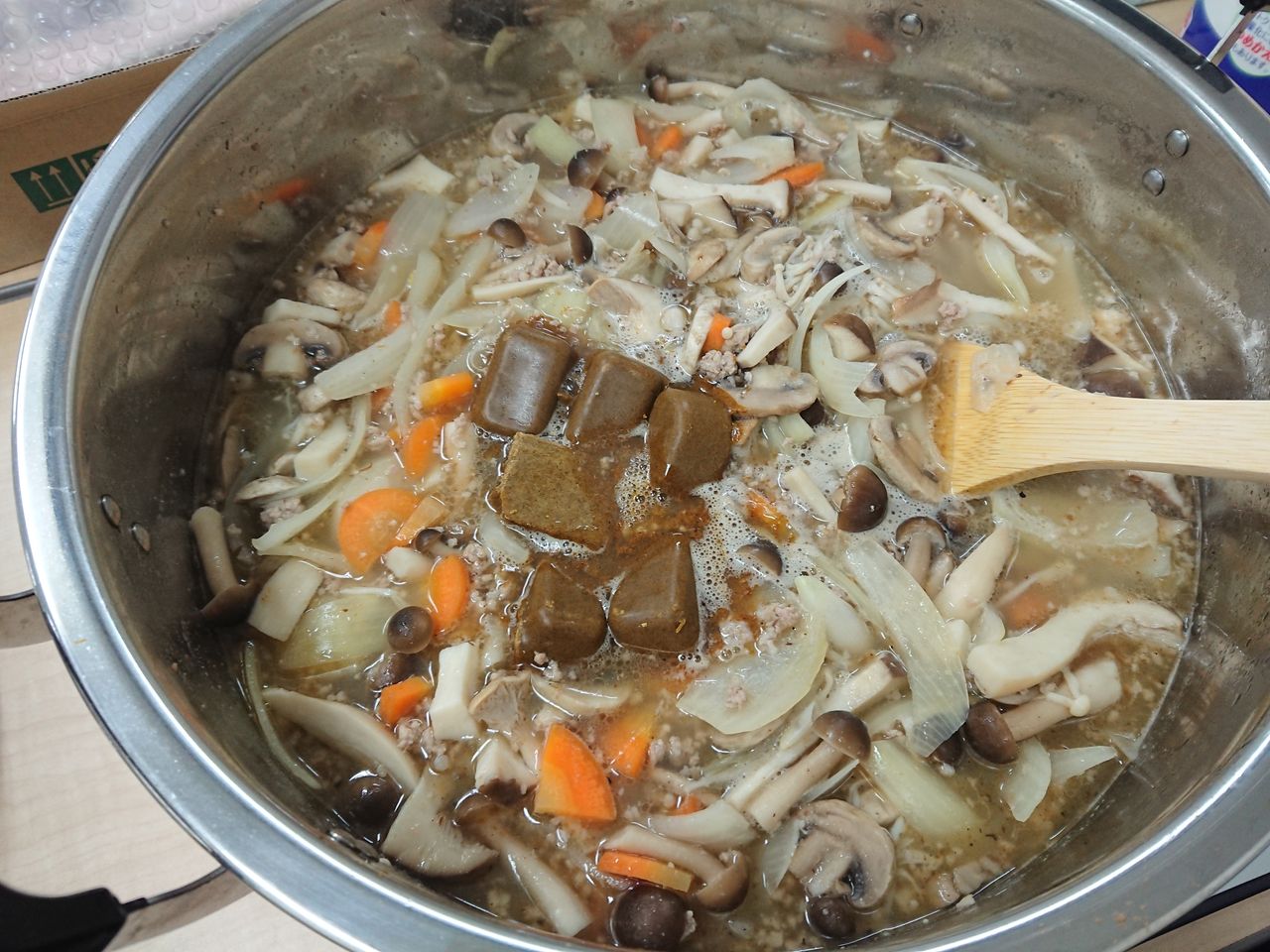 きのこの他に玉ねぎと人参、豚ひき肉を入れました![]()
