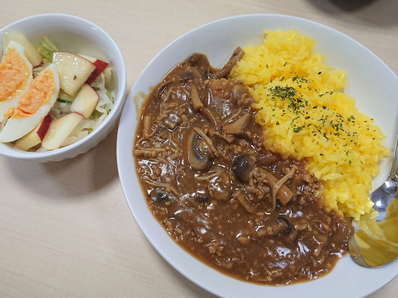 社長が作ってきてくださったりんごサラダを添えて完成です![]()