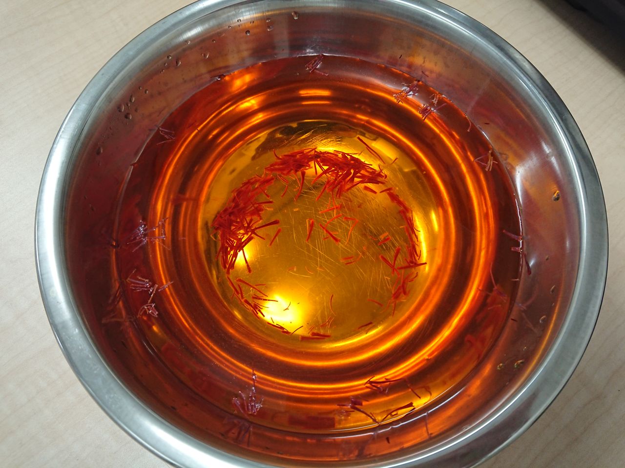 サフラン(クロッカスのめしべ)をボールに入れ、その上から熱湯を注ぎます![]()