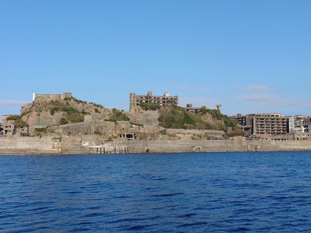 軍艦島は海底炭鉱の島で、岸壁が島全体を囲い、高層鉄筋アパートが立ち並ぶその外観が軍艦に似ていることから「軍艦島」と呼ばれるようになったとか![]()
