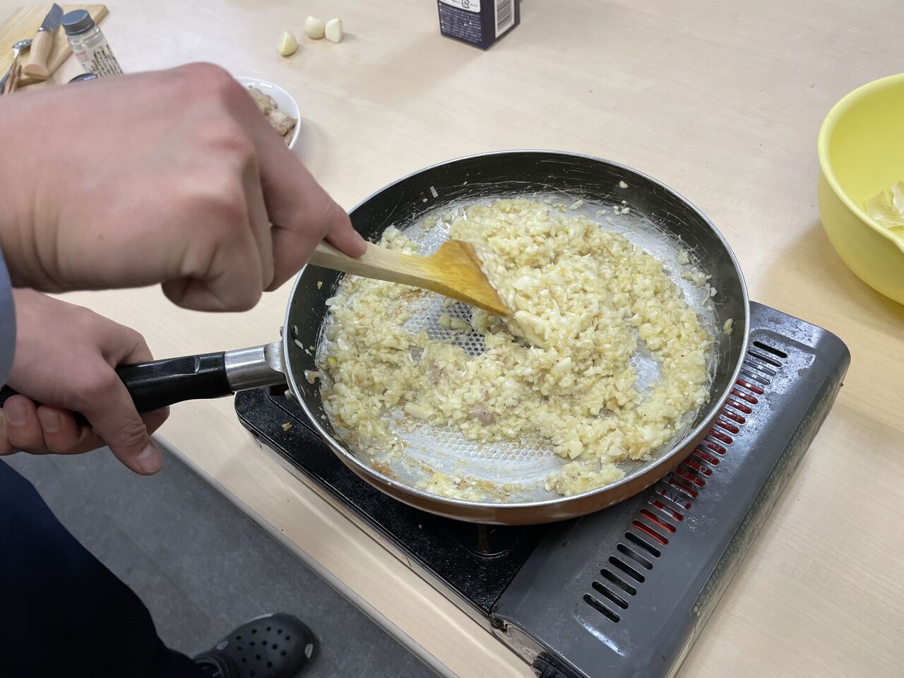ご飯を炒めているのかと思ったら、全部刻んだにんにく![]()