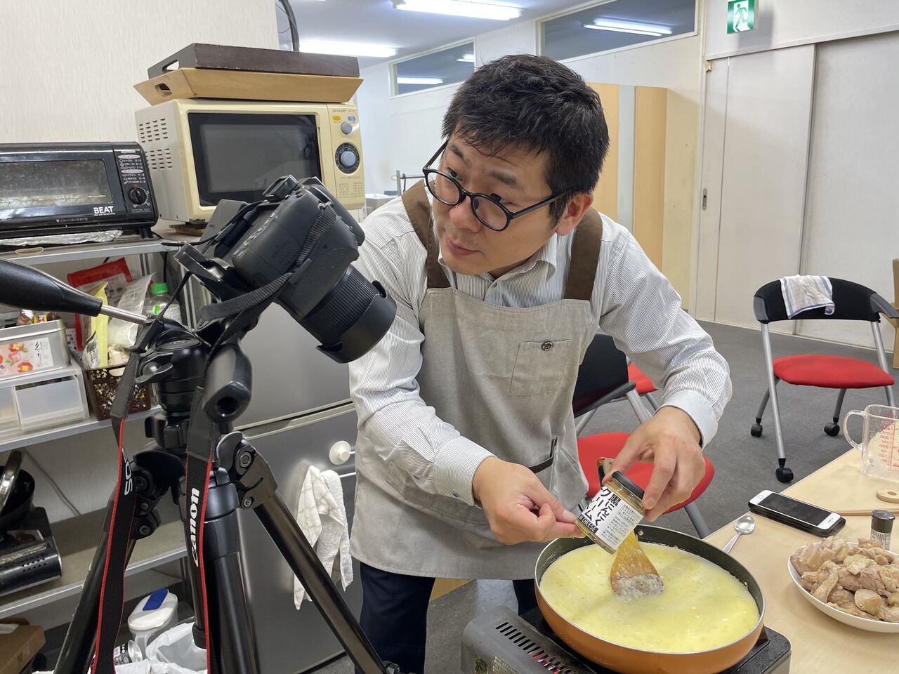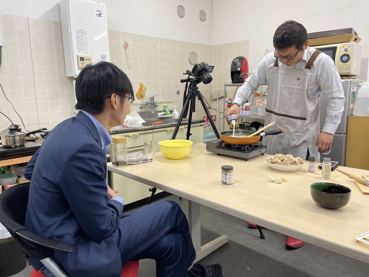撮影にもずいぶん慣れ、まるで本物の料理番組かテレビショッピングのように手順や材料を紹介していきます![]()