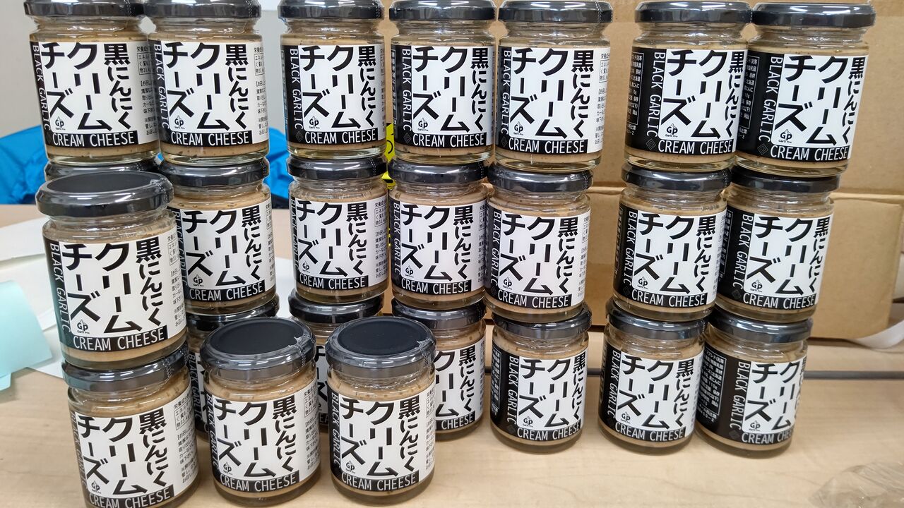 料理長が持っているのは、私が昨日紹介した新商品の「黒にんにくクリームチーズ」![]()