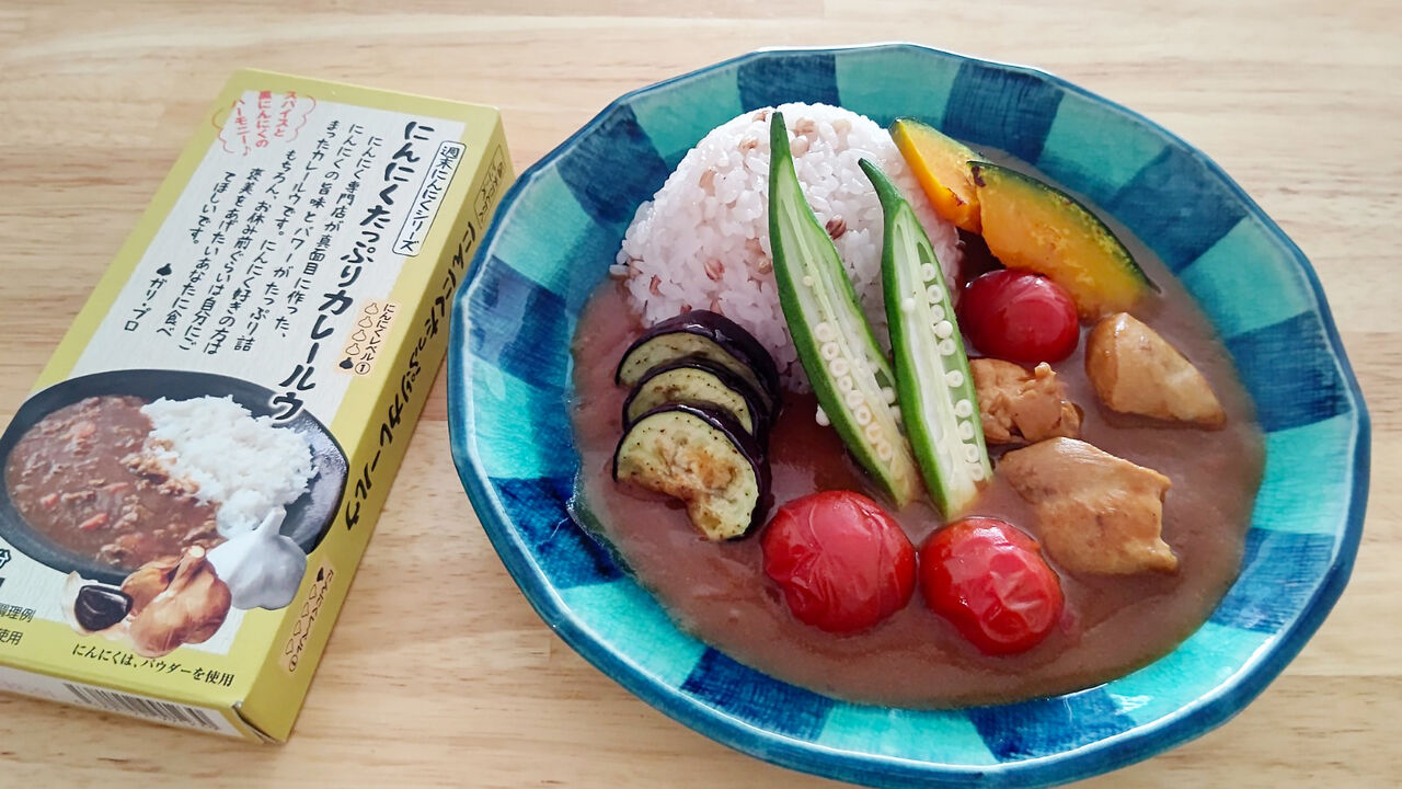 にんにくたっぷりカレールウを使って、夏野菜カレーを作ってみました