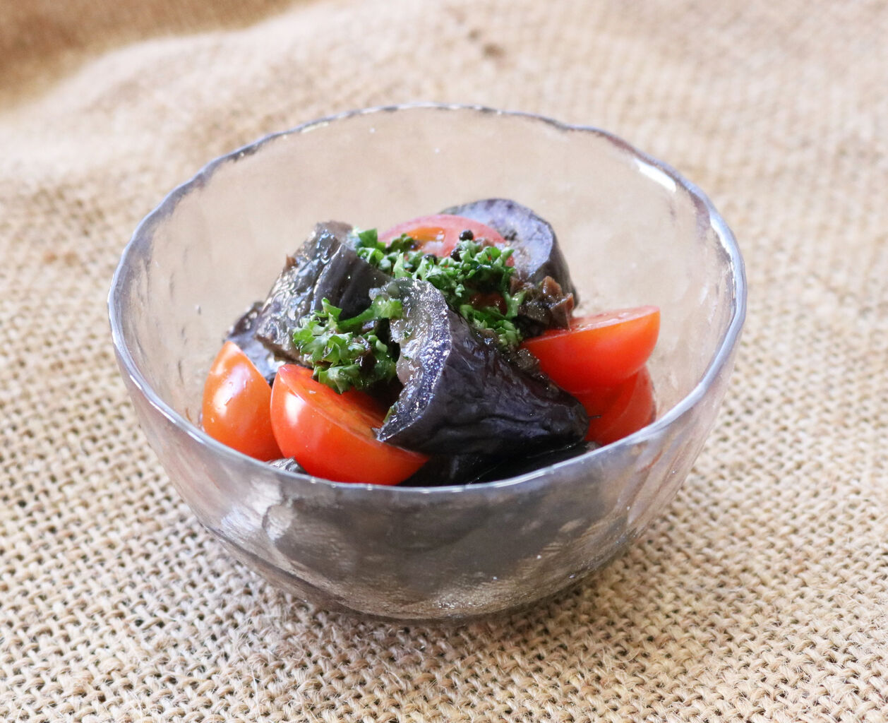 茄子の煮びたしですが、味付けはガリプロのにんにくドレッシングを使用