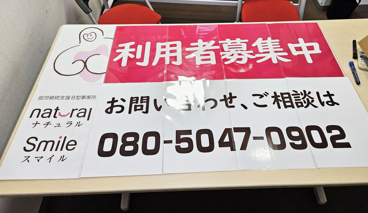 定員にまだ余裕がありますので、利用者さん募集のプラカードを作りました