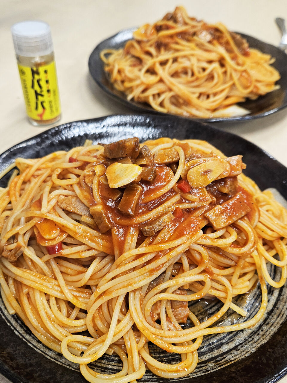 あとは、ソースと麺をフライパンで合流させる時に、パスタの茹で汁をたっぷり入れるとパスタのでんぷん質でとろみがつく