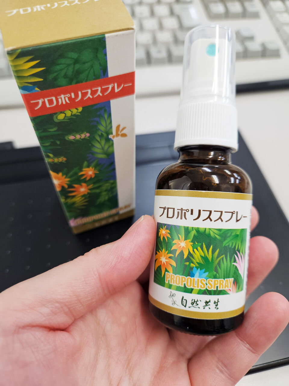 プロポリスには、一般的に炎症を抑えたり、殺菌・抗菌の働きがあるので、帰宅したら手洗い&うがいの後に、プロポリススプレーを3プッシュぐらいしてウイルス予防におすすめ