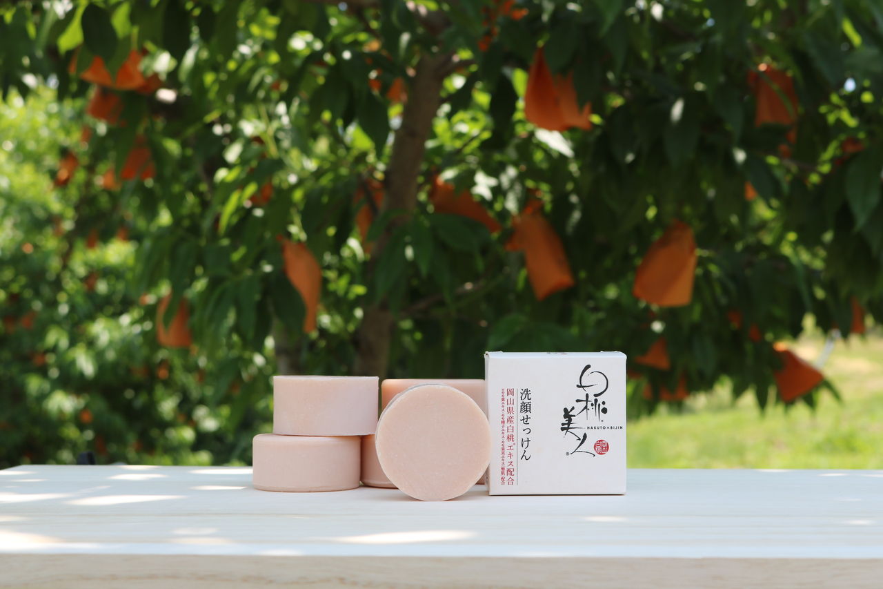 臼井桃園さんが丹精込めて育てた清水白桃エキスを配合した洗顔せっけんです![]()