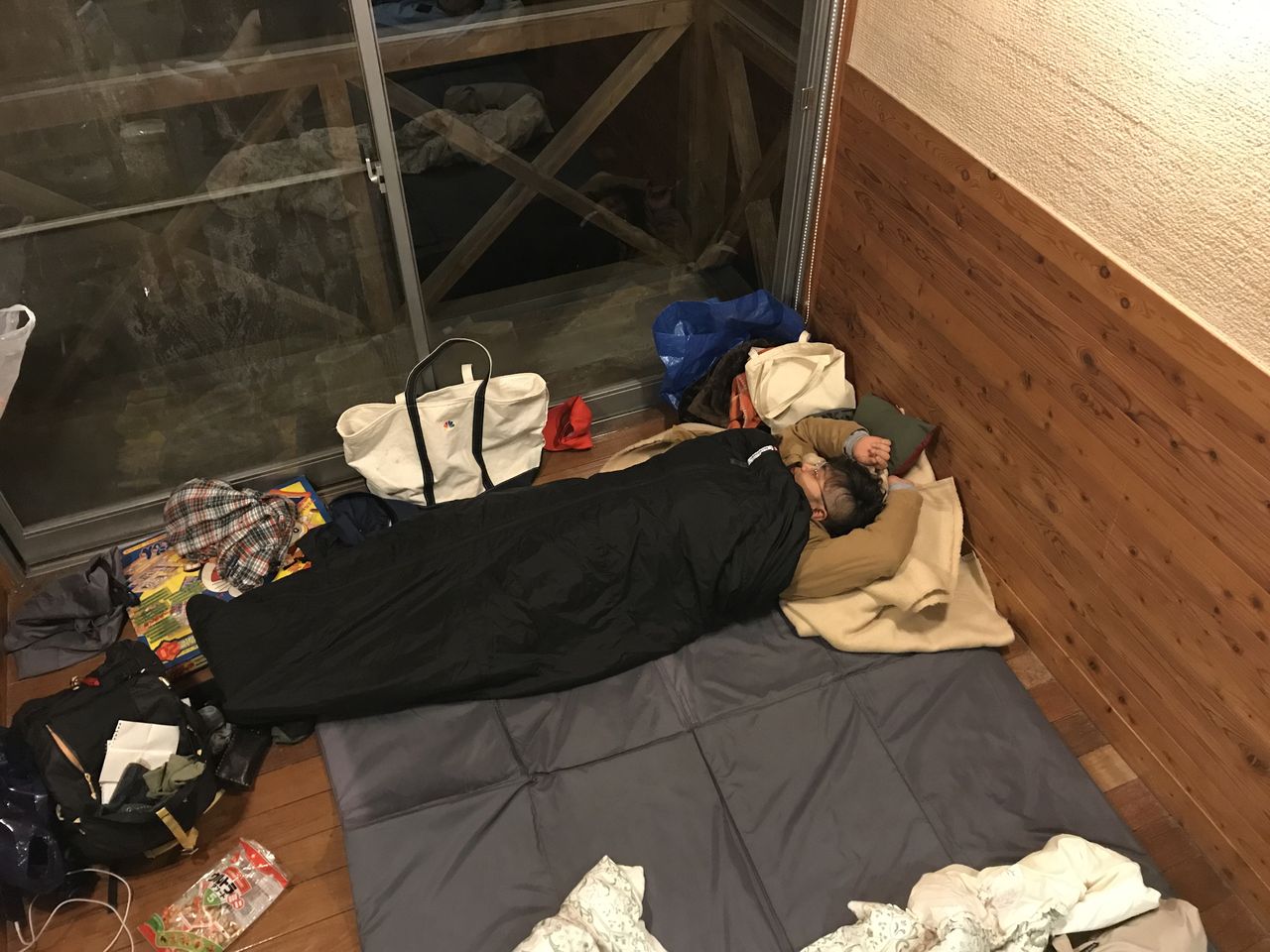 私: 「てっきり屋根だけ作って、寝袋で寝たんかと・・・」